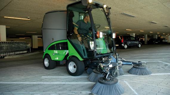 Xe quét đường Nilfisk nhỏ gọn và cơ động. Tay lái có khớp nối đặc biệt và kích thước nhỏ gọn hoàn hảo để làm sạch xung quanh các vật cản trên khu vực đỗ xe và lên xuống các dốc của bãi đậu xe bên ngoài trung tâm mua sắm.